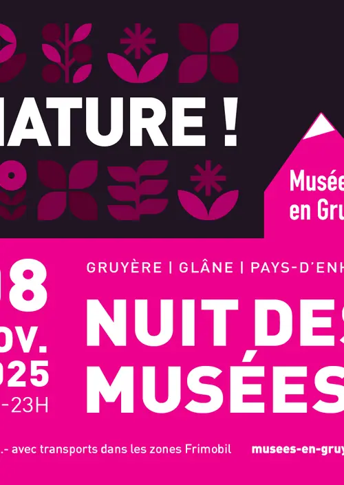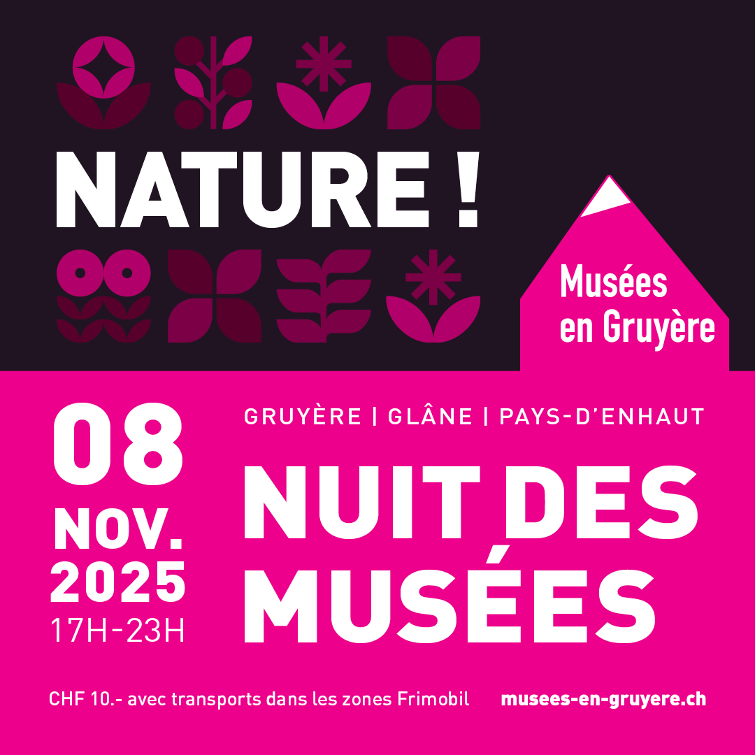 Placée sous la thématique commune « NATURE ! », cette soirée féérique enchantera petits et grands grâce à de nombreuses animations, découvertes inattendues et dégustations d’ici et d’ailleurs. Un programme concocté par un étonnant réseau de musées qui vous fera passer une soirée inoubliable, que ce soit en Gruyère, en Glâne et au Pays-d’Enhaut. 💗🌙